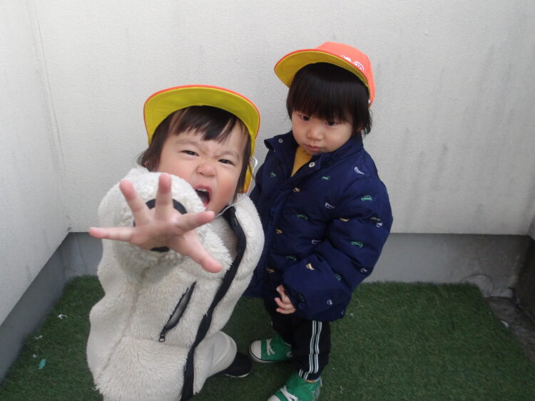 子どもたちの逃げる先は園庭のすみっこ!しめしめと鬼が近づくと、子どもたちは「キャー!!!」と嬉しそうな叫び声が(笑)