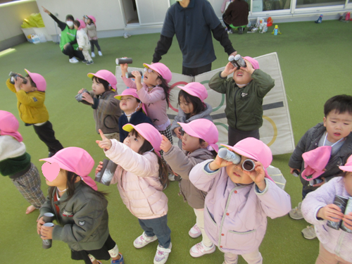 みんなでたくさん身体を動かしたあとは双眼鏡をつかって空の観察をしました!
