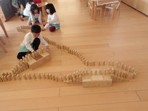 積み木でドミノを作っていたり🎶