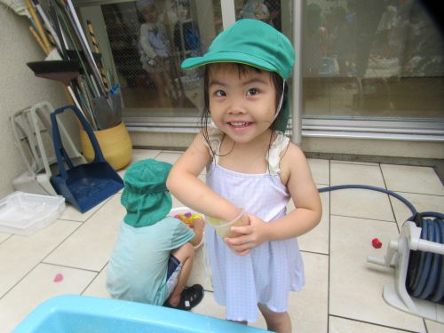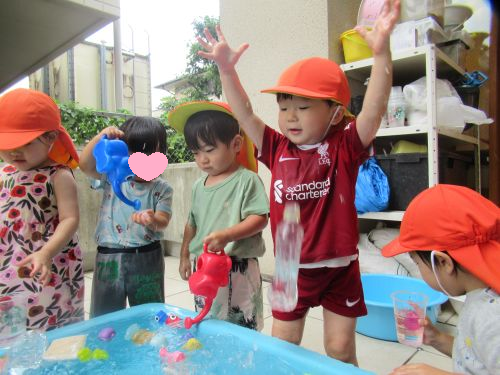 お水遊びで過ごしたお友だちは今日も大胆にお水を浴びて楽しんでいましたよ😆💦✨