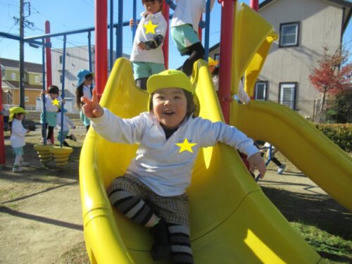 まずは、公園チーム! 安賀公園で、走ったり遊具で遊ぶ姿がありました。