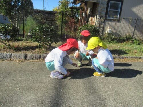 虫さんがいるのかな・・・? みんなで観察、楽しいね🐛
