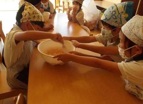今日はクッキングと8月生まれの誕生日会です🎂