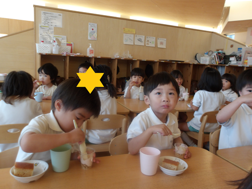バースデイソングでお友だちをお祝いして、みんなで作ったケーキを食べました😄💗