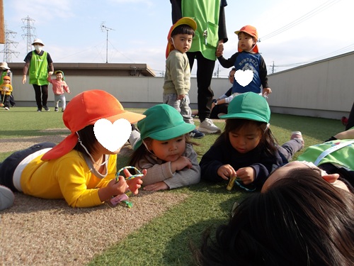 園庭で遊びました!日差しがありポカポカ陽気で、上着なしで遊べました☼