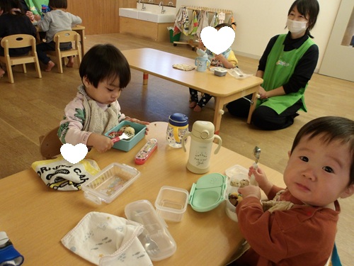 お外で元気いっぱい遊んだ後は、お待ちかねのお弁当タイム💗
