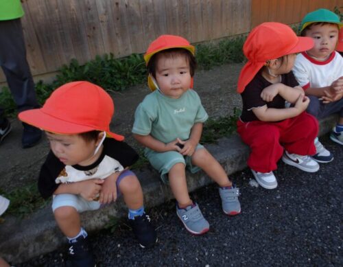 防災頭巾をかぶってお外に避難⛑ ちょっぴりドキドキしたけれど、しっかりお話を聞いて避難できたね🤗