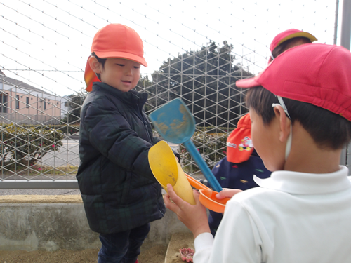 まだまだ風が冷たいですが、みんな砂場あそびを楽しんでいました🌞✨