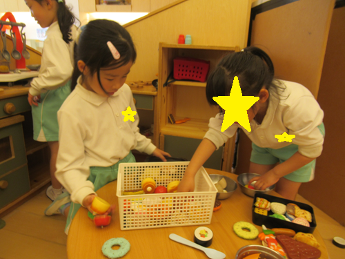 今日はお部屋での製作コーナー、おままごとコーナー、城田公園チームに分かれてあそびました🌞