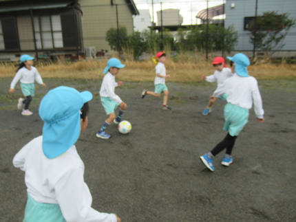 【城田公園】最近お天気がいい日は、毎日サッカーをやっていることもありボールを上手く操れるようになってきましたね友だちにボールを奪われないようにドリブルをしていましたよ✨