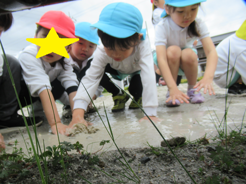 いつもと違う地面の感触、あっという間に泥んこ遊びスタート