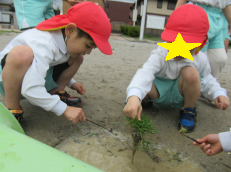 公園にある石や枝、草でご飯を作っているお友だちもいましたよ☺