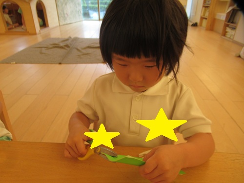 手の位置やハサミのカバーをすぐに付けるなど意識しながら楽しく切る姿が見られました![]()
