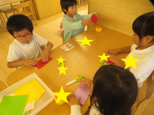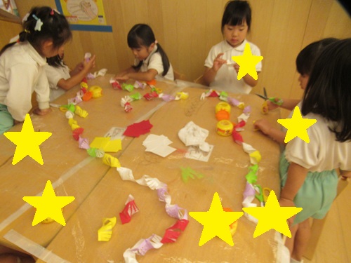 昨夜から雨が降っていたのでお部屋で七夕製作をしました✨