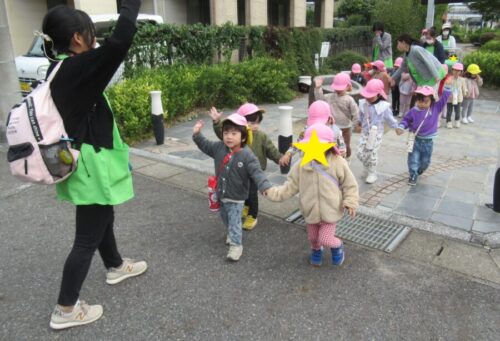 ひよこ組さんのお友だちも楽しそうにニコニコで歩いておでかけできました🥰
