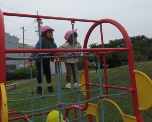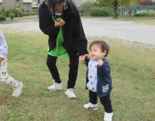 先生とだけでなく、子どもたち同士で手を繋ぎながら公園内をお散歩したり、滑り台のお山を登るのを手伝ってあげたりと自分からお友だちと関わろうとする子どもたちの姿が垣間見え、成長を感じています🤗