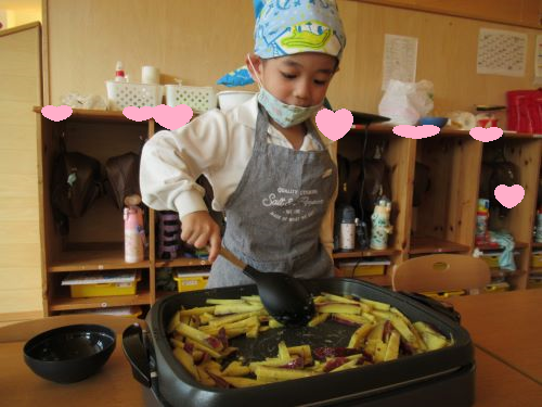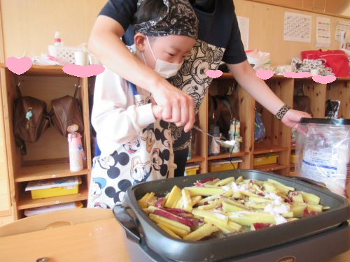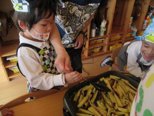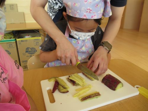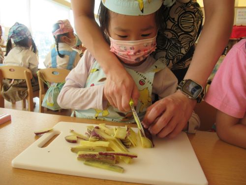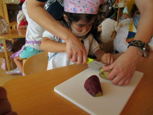 まずは、さつまいもを先生と一緒に包丁で切っていきます😊🌟