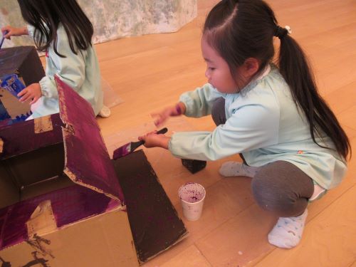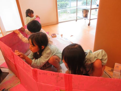 誕生日会の後は幼児クラスは屋上園庭や室内で製作活動をして過ごしました😊
