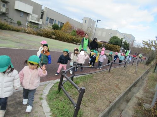 保育者の仲立ちで異年齢で手を繋げたお友だちもいて、無事段下公園に到着![]()