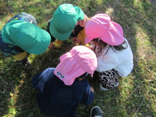 木の実や枝、虫探しに夢中なお友だちの姿もありましたよ![]()