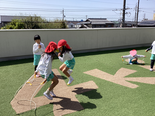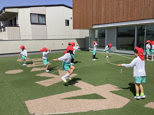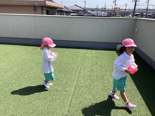 きりんぐみさんは園庭で縄跳びやボール遊び、紙飛行機などであそびましたよ!✨