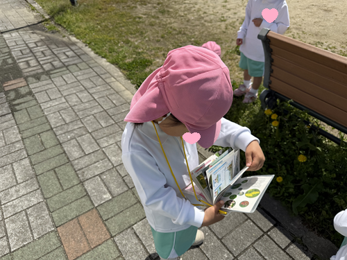 公園チームでは観察図鑑を借りてぱんだ組さんと一緒に自然を観察しました👀✨