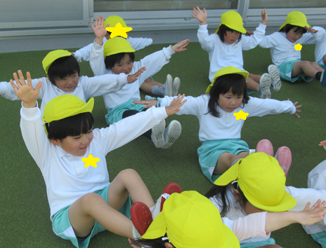 体操教室では線路の上を踏まないようにジャンプしましたよ!