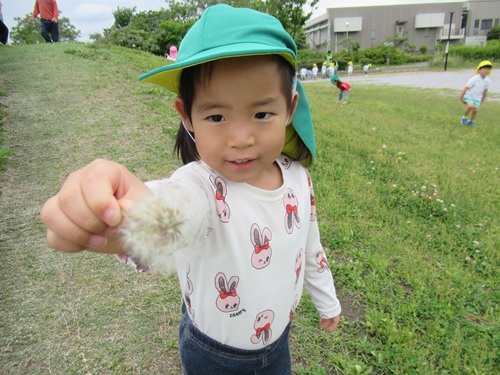 たんぽぽの綿毛やテントウムシを見つけて楽しんでいました😊💗