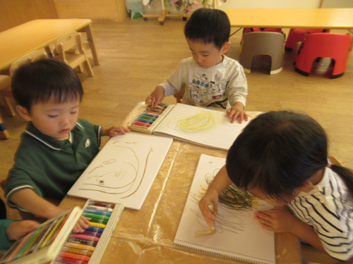 あひるぐみは久々に 自分の じゆうがちょうとクレヨンを🌈