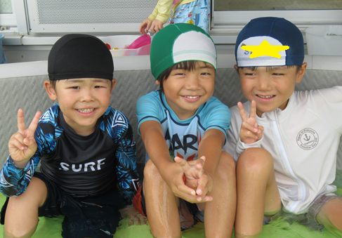 今日はプール遊びではなく、いつも使っているプールにお湯を入れ、温泉にみんなで入りました♨