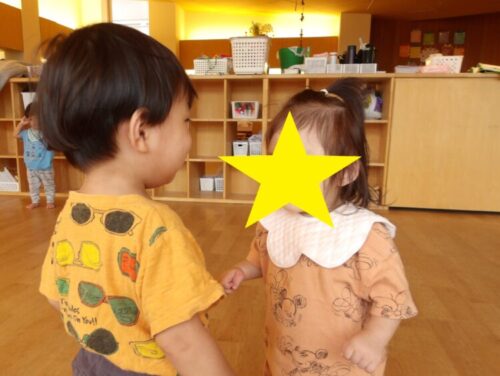 お友だちが1歩を踏み出そうとしている様子に気付いてすかさず一緒に喜んでいるお友だちの姿が微笑ましいです🥰