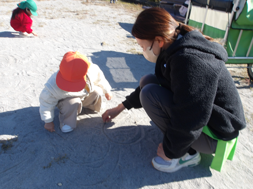 先生と絵を描いて砂あそびをしている子もいましたよ🌈