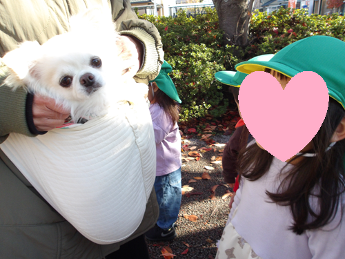 探索場所に着くとさっそく落ち葉を拾ってうれしそうなひよこさん💖