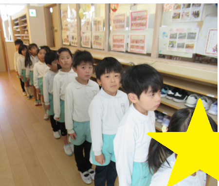 明日はいよいよ卒園式です今日は最後のきりん組さんぱんだ組さんの合同で行いました。「明日が卒園式だな~」と緊張感をもって取り組んでいました。