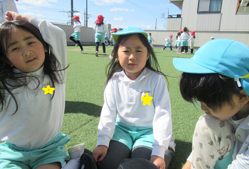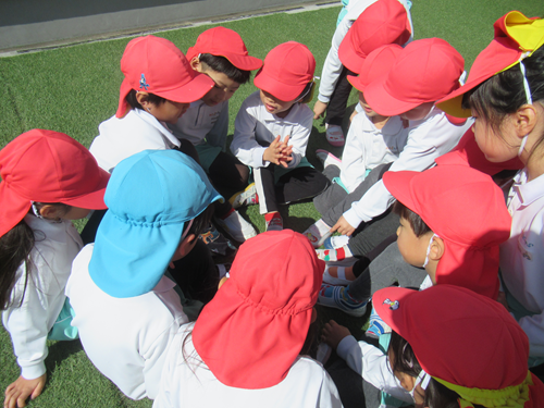 こちらのお友だちは、園庭でも歌を歌っていましたよ![]()