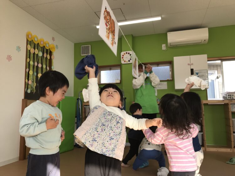 今日の体操はこわ~い動物が出てきました