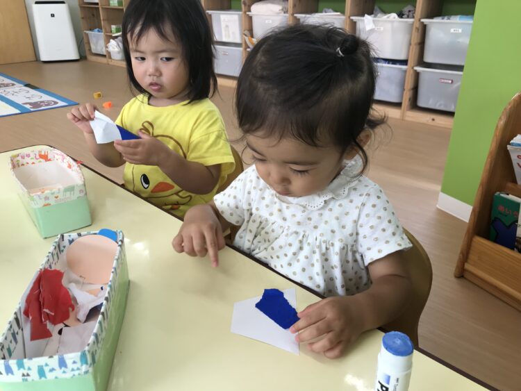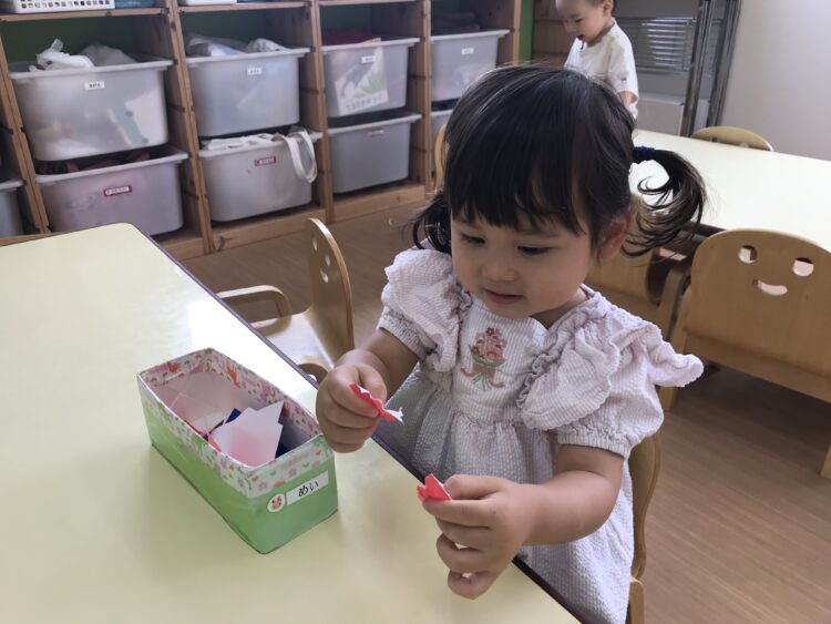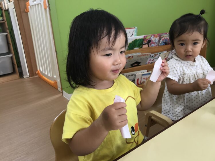 折り紙をビリビリ![]()