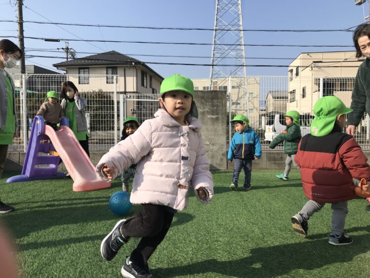 今日は少し暖かく日差しもあって、外遊びも楽しくできました。