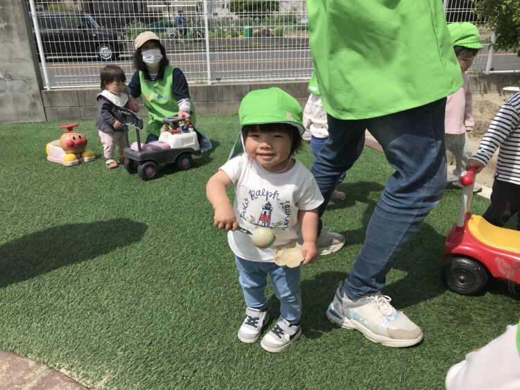 保育士と一緒にたくさんシャボン玉を作って遊んだね🎶