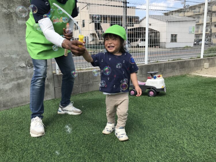 シャボン玉が飛んでくるとみんな大喜び😊