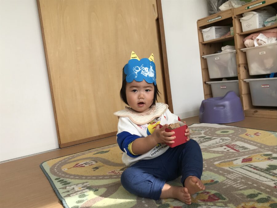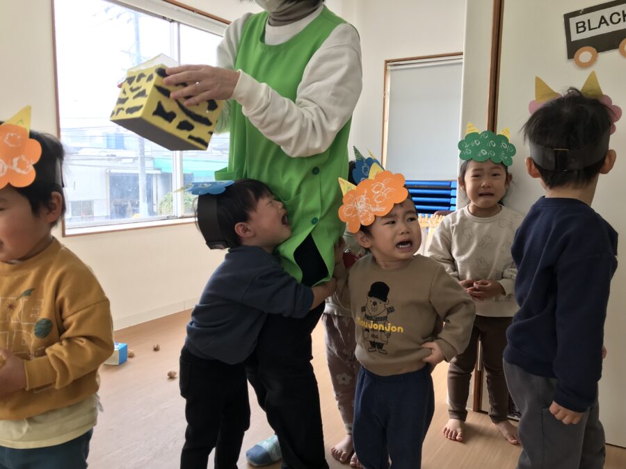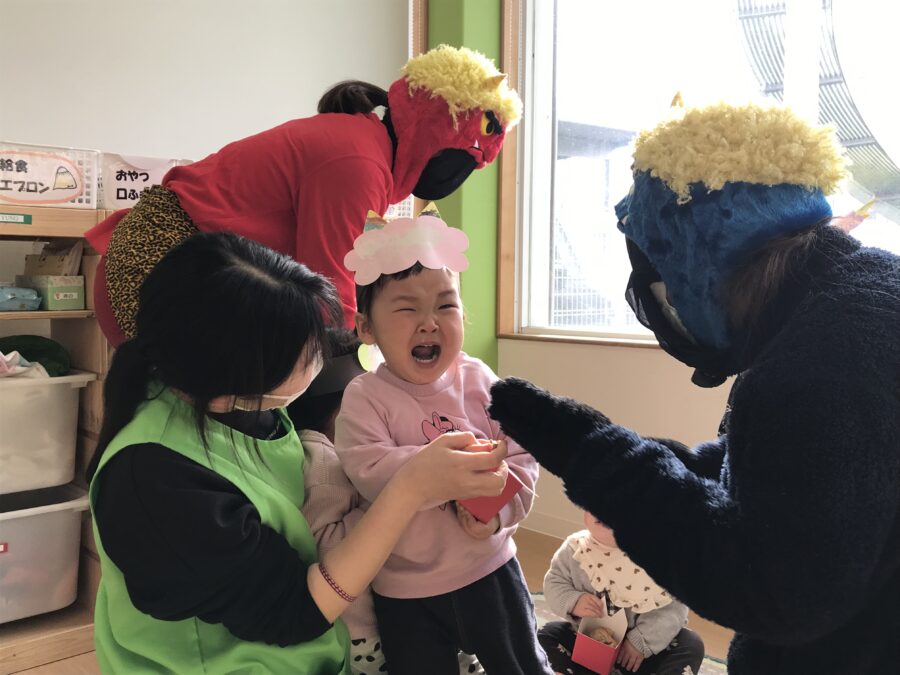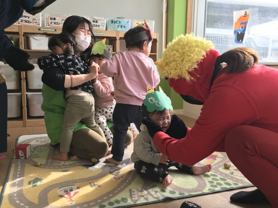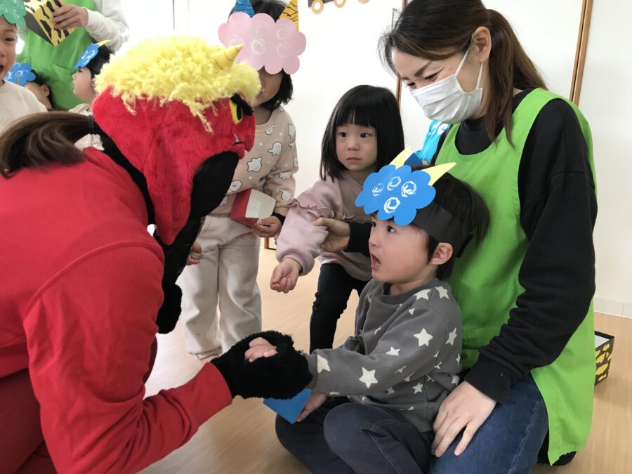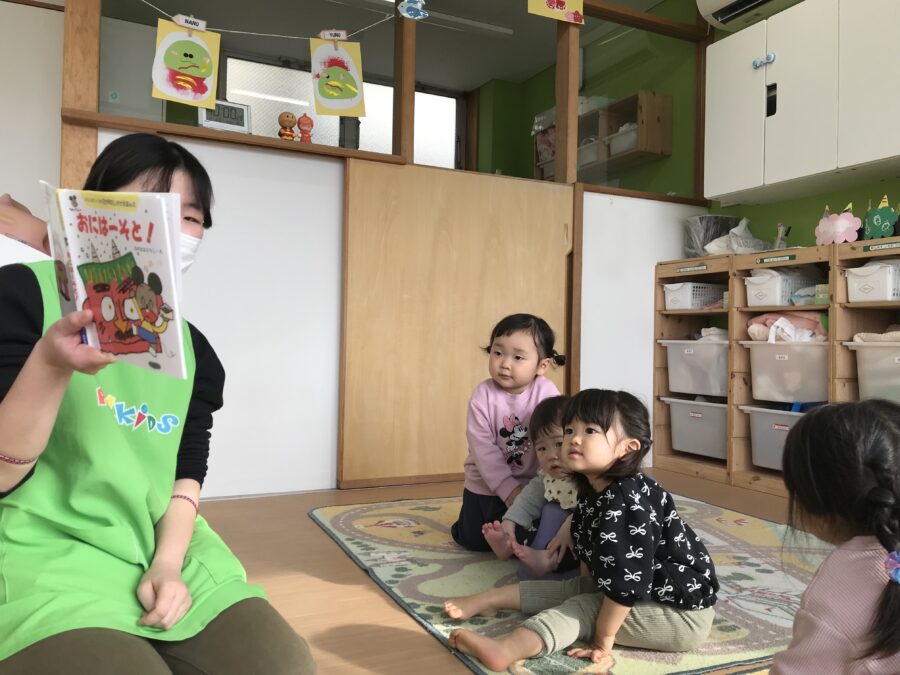 保育士から節分の絵本もとても真剣に聞いてくれました😌