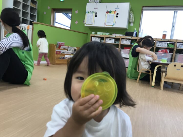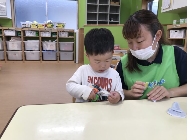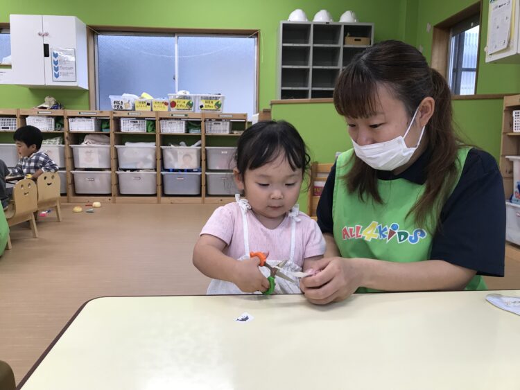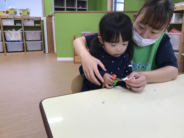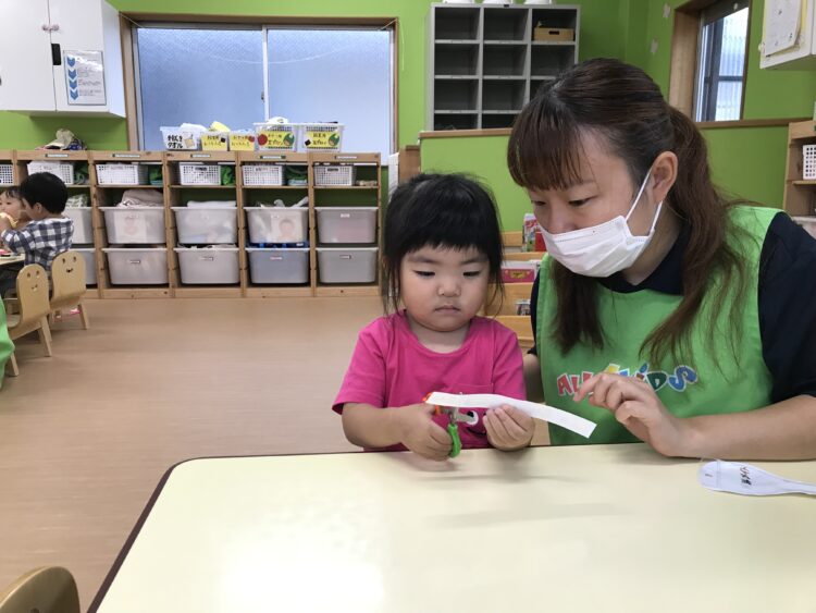 2歳児さんは ハサミにチャレンジ![]()