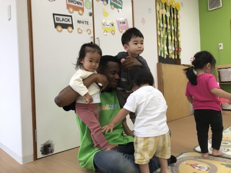 その間、待っててくれた1歳児さんは ジュド先生とおままごと。