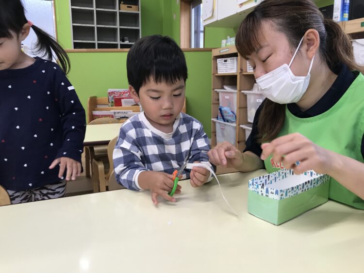 初めに「ハサミ」を使うときのお約束を伝えました。