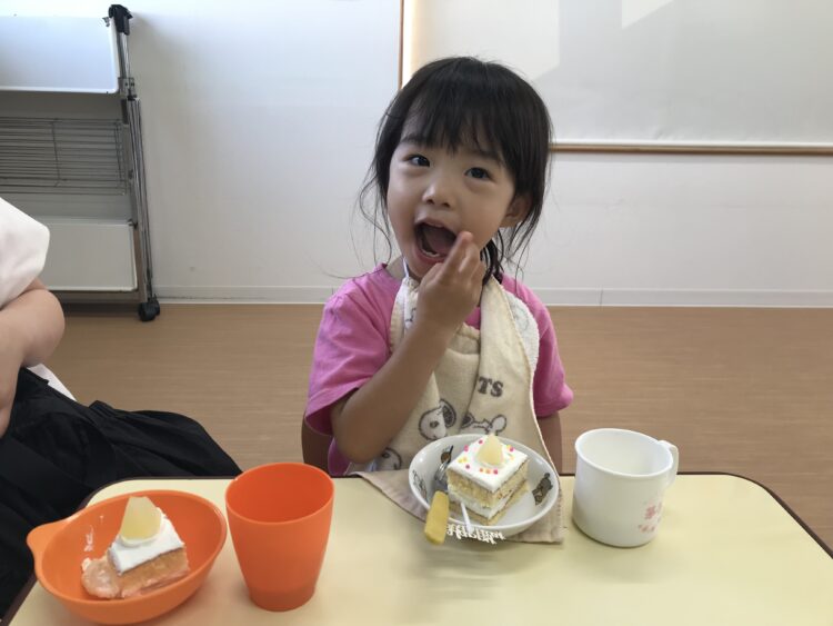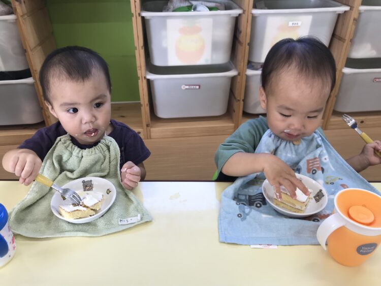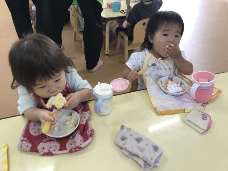 「なんの果物かなー?」とお話ししながら美味しそうに食べていました🎶