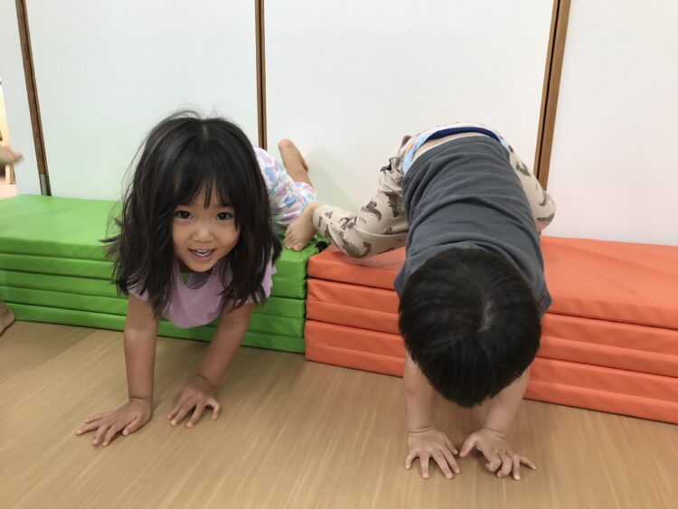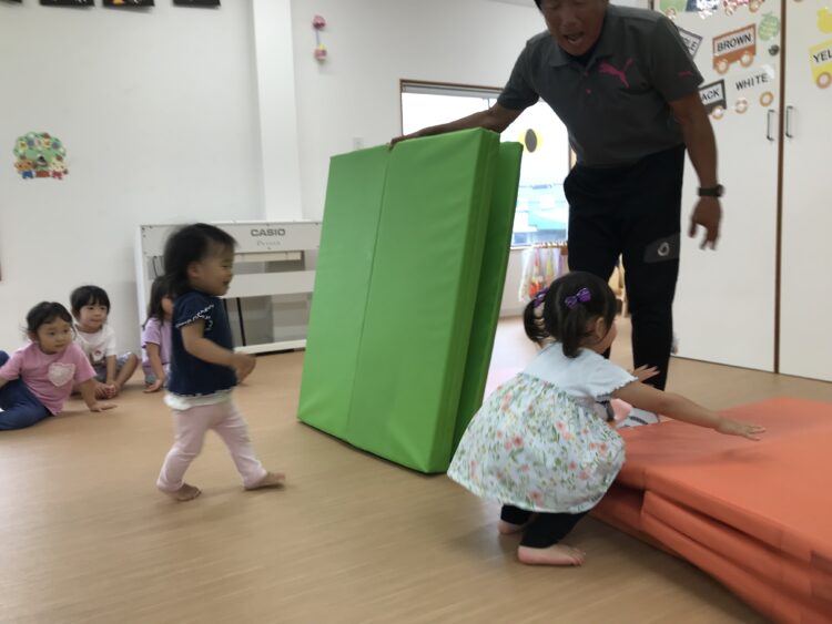 今日もいろんなことに挑戦しました✨ マットを倒したり押したりして楽しかったね😊