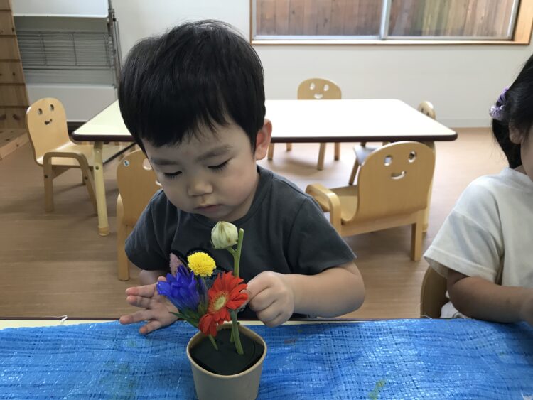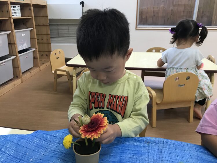 「このお花がいい!」「黄色のお花があるね。」などとお話ししながらフラワーを楽しんでいました‼︎