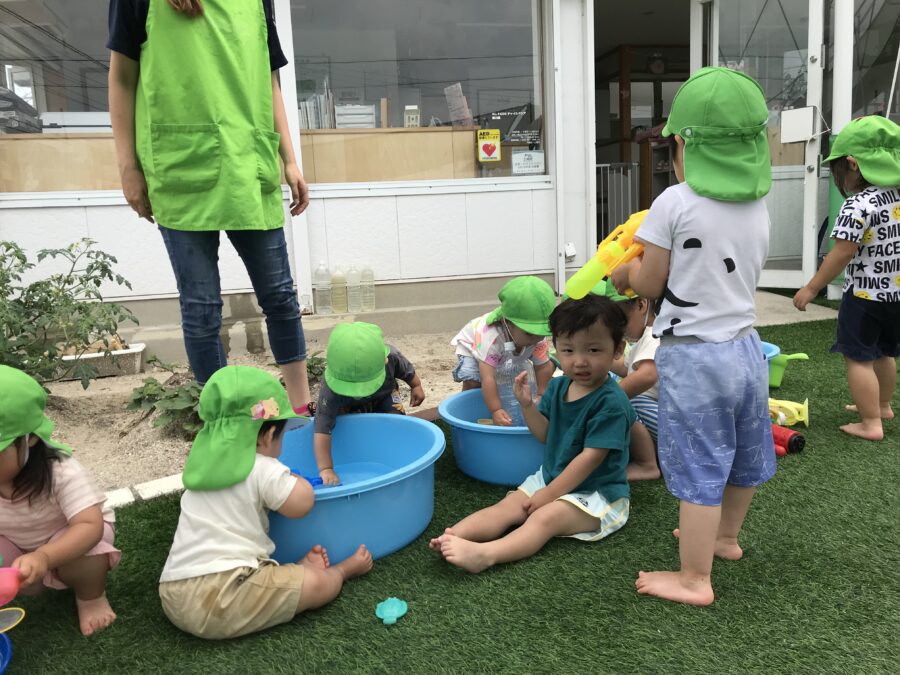 エネルギーチャージした後は水遊び♪