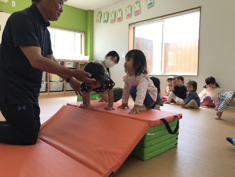 体操教室 久しぶりの体操教室 今日は マットに挑戦です。 小さなコーンをひっくり返す 競争です。 みんな、無心になっていたようです。 今日から新しいお友達も加わり、 賑やかな 勝川園です カテゴリ: 勝川園 タグ: