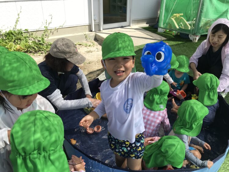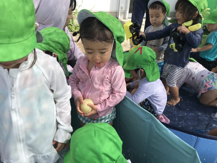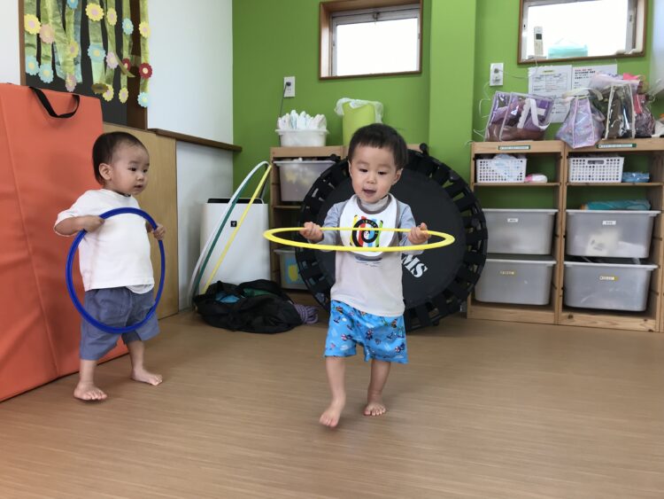 その次は講師が投げた輪っかを追いかけてキャッチ!